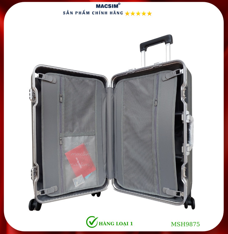 Vali Macsim được  làm từ chất liệu nhựa nguyên chất 3 lớp của hãng Bayer xuất xứ Đức. Tấm lót bên trong Poliester 150D xuất xứ Trung Quốc được REACH kiểm nghiệm và phê duyệt, bánh xe 360 độ hãng SJ của Mỹ; Khóa kéo thương hiệu YKK Nhật Bản, Khóa TSA hãng YIE Hồng Công. Tạo nên 1 sản phẩm đẹp, bền, chắc chắn tạo dấu ấn phong cách thời trang cá nhân của bạn trên mọi cuộc hành trình.