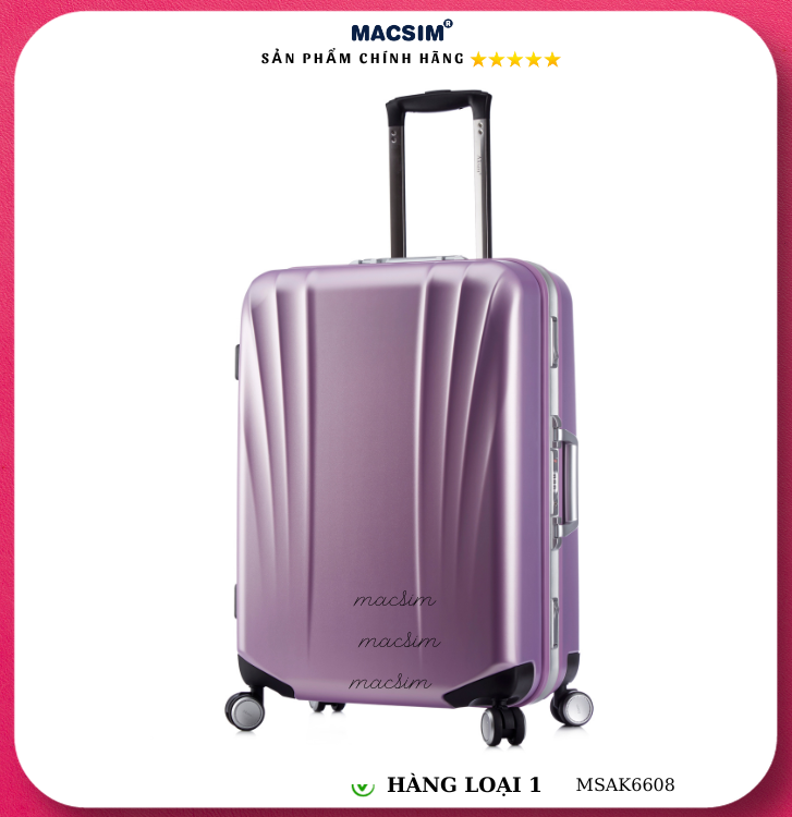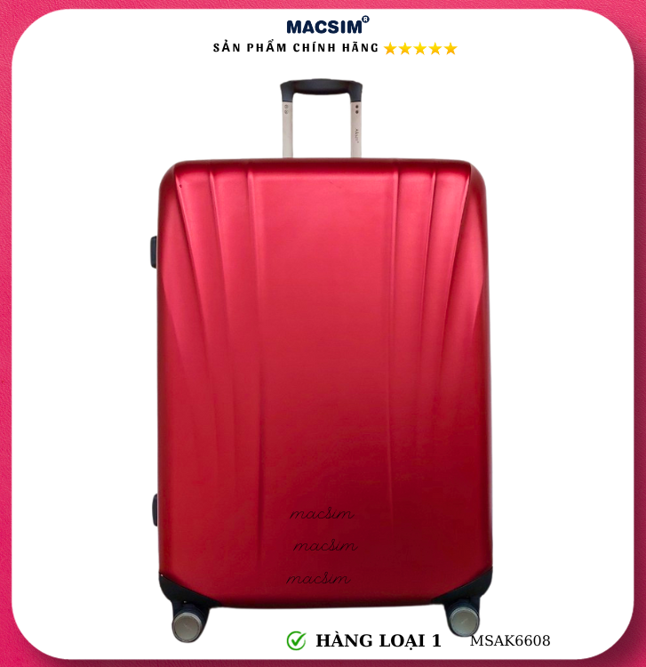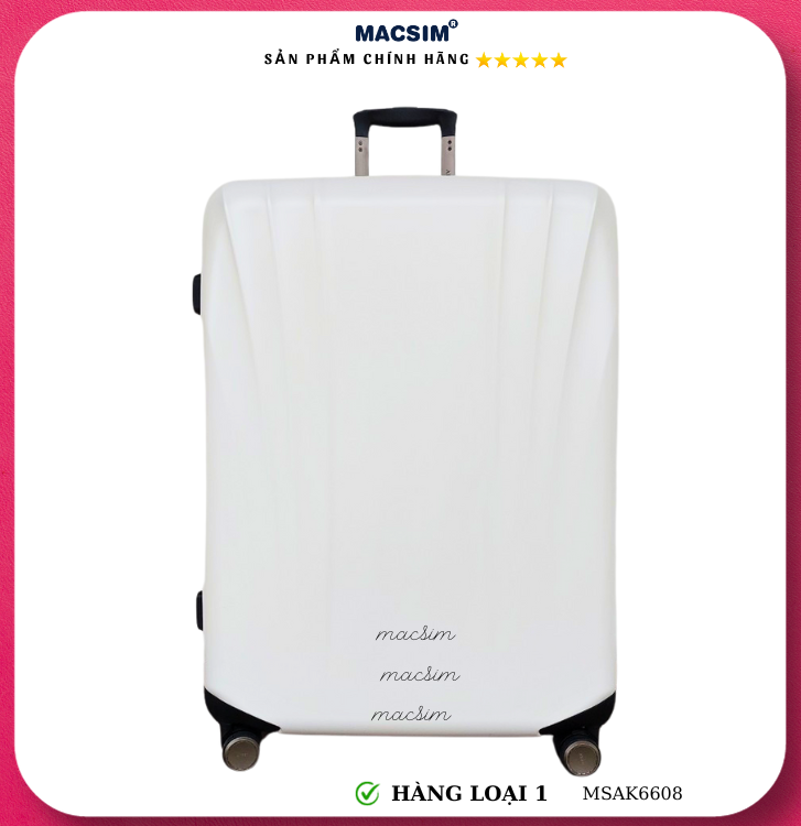 Vali Macsim được làm từ chất liệu nhựa nguyên chất PC. Tấm lót bên trong Poliester 150D xuất xứ Trung Quốc được REACH kiểm nghiệm và phê duyệt, bánh xe 360 độ hãng Hinomata của Nhật ; Khóa kéo thương hiệu SBS xuất xứ Trung Quốc, Khóa TSA hãng Master Lock của Mỹ. Thiết kế vali đơn giản lịch lãm vô cùng sang trọng, bền bỉ, tạo dấu ấn phong cách thời trang cá nhân của bạn trên mọi cuộc hành trình. Vali cao cấp Macssim thích hợp với những người thường xuyên di chuyển cần chiếc vali nhẹ, có độ bền tốt.
