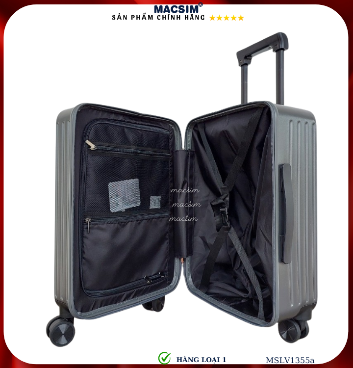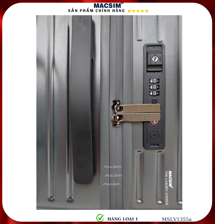 Vali Macsim được làm từ chất liệu nhựa nguyên chất PC. Tấm lót bên trong Poliester 150D xuất xứ Trung Quốc được REACH kiểm nghiệm và phê duyệt, bánh xe 360 độ hãng SJ CỦA Mỹ ; Khóa kéo thương hiệu SBS xuất xứ Trung Quốc, Khóa TSA hãng Master Lock của Mỹ. Thiết kế vali đơn giản lịch lãm vô cùng sang trọng, bền bỉ, tạo dấu ấn phong cách thời trang cá nhân của bạn trên mọi cuộc hành trình. Vali cao cấp Macsim thích hợp với những người thường xuyên di chuyển cần chiếc vali nhẹ, có độ bền tốt.