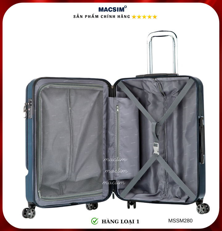 | Kích thước | THÔNG SỐ KỸ THUẬTSize:20inchKhối lượng (kg):3,5Kích thước (cm):59*38.5*23cmSức chứa:7-12 kgXuất xứ:Trung QuốcChất liệu chính:Nhựa PC cao cấpBảo hành:3 nămVali Macsim đượclàm từ chất liệu nhựa nguyên chất PC. Tấm lót bên trong Poliester 150D xuất xứ Trung Quốc được REACH kiểm nghiệm và phê duyệt, bánh xe 360 độ hãng Hinomotocủa Nhật ; Khóa kéo thương hiệu SBS xuất xứ Trung Quốc, Khóa TSA hãng Master Lock của Mỹ. Thiết kế vali đơn giản lịch lãm vô cùng sang trọng, bền bỉ,tạo dấu ấn phong cách thời trang cá nhân của bạn trên mọi cuộc hành trình.Vali cao cấp Macssim thích hợp với những người thường xuyên di chuyểncần chiếc valinhẹ, có độ bền tốt.Thế nào là vali hàng loại 1? Mộtchiếc vali hoàn chỉnhđược tạo thành từ các linh kiện như thân vỏ, khung, bánh xe, tay nắm, khóa... Hàng loại 1 là sản phẩm đạt chất lượng cao nhất xuất đi Châu Âu và Mỹ.• Khóa TSA tích hợp giữ đồ đạc của bạn an toàn. Khóa TSAtiêu chuẩn Hoa Kỳ chống trộm, cho phép nhân viên sân bay kiểm tra hành lý mà không cần cậy phá khóa. Đảm bảo an toàn hành lý tư trang bên trong, cũng như tiết kiệm thời gian cho nhân viên an ninh.• Dây kéo khóa: Dây kéo khóa bền bỉchống rạch trộm.• Bánh xe cao su non silicon xoay đa hướng 360 độ lướt êm,linh hoạt,vận hành êm ái ngay cả bề mặt gồ ghề, chắc chắn sẽ mang đến cho quý khách một trải nghiệm di chuyển tuyệt vời.• Khung vali bằng nhôm cứng cáp chống rỉ sét tích hợp khóa khung hiện đại.• Chất liệu vỏ vali được làm bằng 100% polypropylene (PP) với kết cấu tuyến tính, loại nhựa nhẹ nhất trên thị trường hành lý, chịu được nhiệt tốt, có tính bền cơ học rất cao (dù xé rách hay kéo đứt cũng khó bị ảnh hưởng).NhựaPP được xem là người bạn thân thiện với con người và môi trường vì an toàn với thực phẩm và dễ tái chế. Valicực kỳ nhẹ, chắc chắn, đàn hồi tốt, chống trầy xước, chống va đập, giữ cho vali luôn mới mẻ dù trong bất kỳ điều kiện nào.•Nội thất - Vách ngăn:Lớp vải cao cấp sang trọng. Thiết kế nội thất nhiều ngăn và túi tiện dụng.Mỗi ngăn đều có một ngăn chính rộng rãi, có khóa kéo với dây đeo chéo đàn hồi để đựng đồ bên trong, cùng với ngăn nắp có khóa kéo để giữ phụ kiện và đồ vệ sinh cá nhân riêng biệt. Khoang hành lý vuông vức tối ưu sức chứa lên 30%, có nhiều ngăn và túi tiện dụng, đai chéo chữ X cố định hành lý không xáo trộn và dải phân cách hỗ trợ đóng gói dễ dàng.• Tích hợp tay cầm bên trên và bên hông tiện lợi thông minh.• Cần đẩy đa điểm, hợp kim vát siêu nhẹ, phân nấc thông minh, điều chỉnh chiềucao một cách dễ dàng phù hợp với không gian di chuyển |