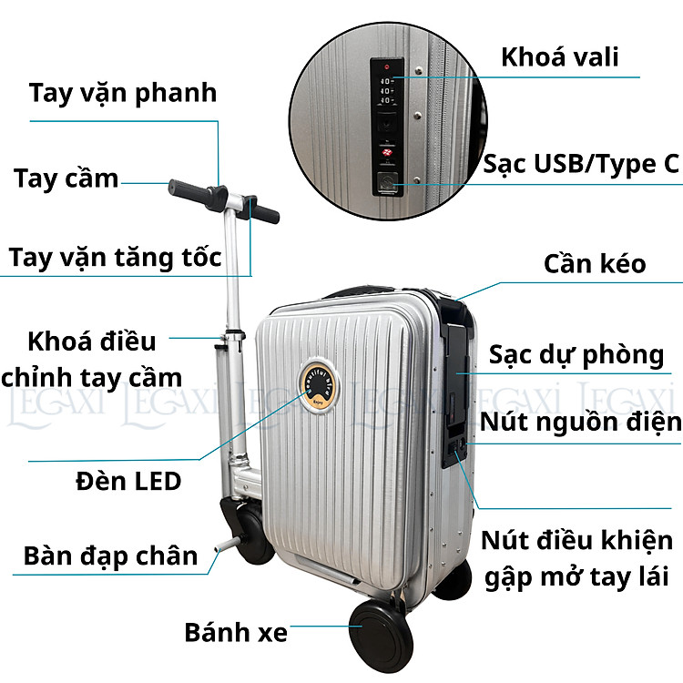 - Vừa là vali kéo du lịch, vừa là phương tiện di chuyển cá nhân, giúp tiết kiệm thời gian và sức lực.