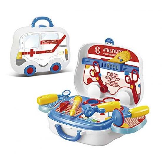 Sản phẩm gồm các dụng cụ cần thiết của một người bác sĩ như là: ống nghe, đèn soi, nhiệt kế, kim tiềm,.. mô phỏng thật sự khiến bé cảm thấy thích thú và muốn khám phá hơn. Set đồ chơi với nhiều chi tiết dụng cụ y tế, bố mẹ có thể dạy bé nhận biết, gọi tên các sản phẩm và cách sử dụng của từng loại dụng cụ Bộ đồ chơi bác sĩ thích hợp với cả bé trai và bé gái với nhiều màu sắc bắt mắt khiến trẻ cảm thấy thích thú khi chơi Với bộ đồ chơi bác sĩ bé sẽ có thể học hỏi khám phá và nuôi dưỡng ước mê làm y tá, bác sĩ ngay từ khi còn nhỏ Khi không sử dụng bé có thể sắp xếp gọn gàng vào trong hộp, rèn luyện tính ngăn nắp và tạo thói quen tốt cho trẻ ngay từ khi còn nhỏ Thiết kế tinh tế Bộ đồ chơi bác sĩ với thiết kế hộp đựng là hình một chiếc xe cứu thương có tay cầm để bé mang đi ra ngoài
