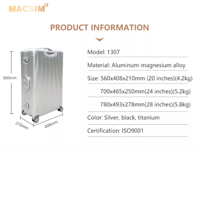 Vali du lịch cao cấp chất liệu hợp kim nhôm nguyên khối MS1307 nhãn hiệu Macsim màu đen cỡ 28inches