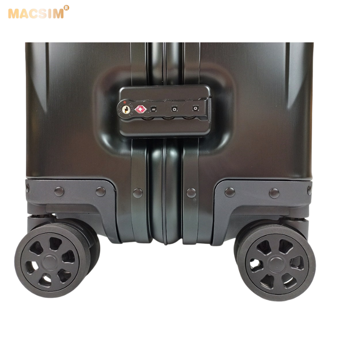 Toàn bộ thân vỏ vali Macsim làm bằng hợp kim nhôm A6063 làm cho vali rất nhẹ, độ đàn hồi cao, chống ăn mòn, chịu được tải trọng lớn.