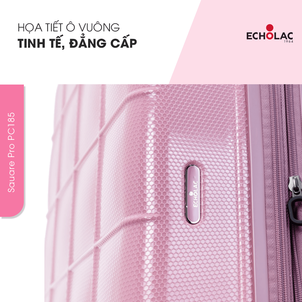 Sở hữu họa tiết ô vuông in chìm mang tính thẩm mỹ cao cùng sắc màu thời thượng, sản phẩm Square Pro PC185 được pha trộn hoàn hảo giữa phong cách du lịch mạnh mẽ phóng khoáng và công nghệ hiện đại giúp hành trình của bạn trở nên hoàn hảo hơn rất nhiều. Bên cạnh đó, PC185 được xếp vào dòng “Smart Luggage” bởi các ô vuông có tác dụng phân tán tác động rất lớn, tăng cường khả năng chịu lực của sản phẩm kết hợp vân nhám tổ ong độc đáo chống trầy