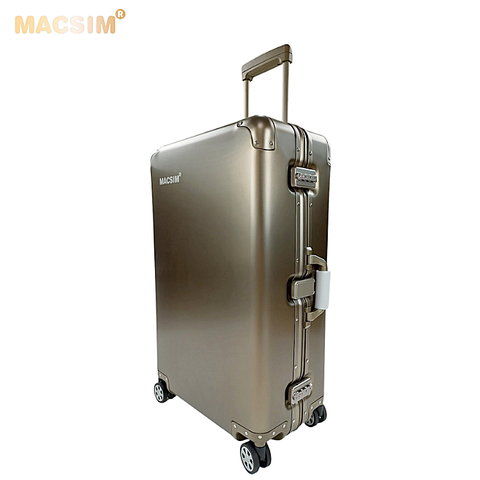 Vali du lịch thời trang cao cấp chất liệu hợp kim nhôm nguyên khối MS1318 Macsim màu ti-gold cỡ 28inches