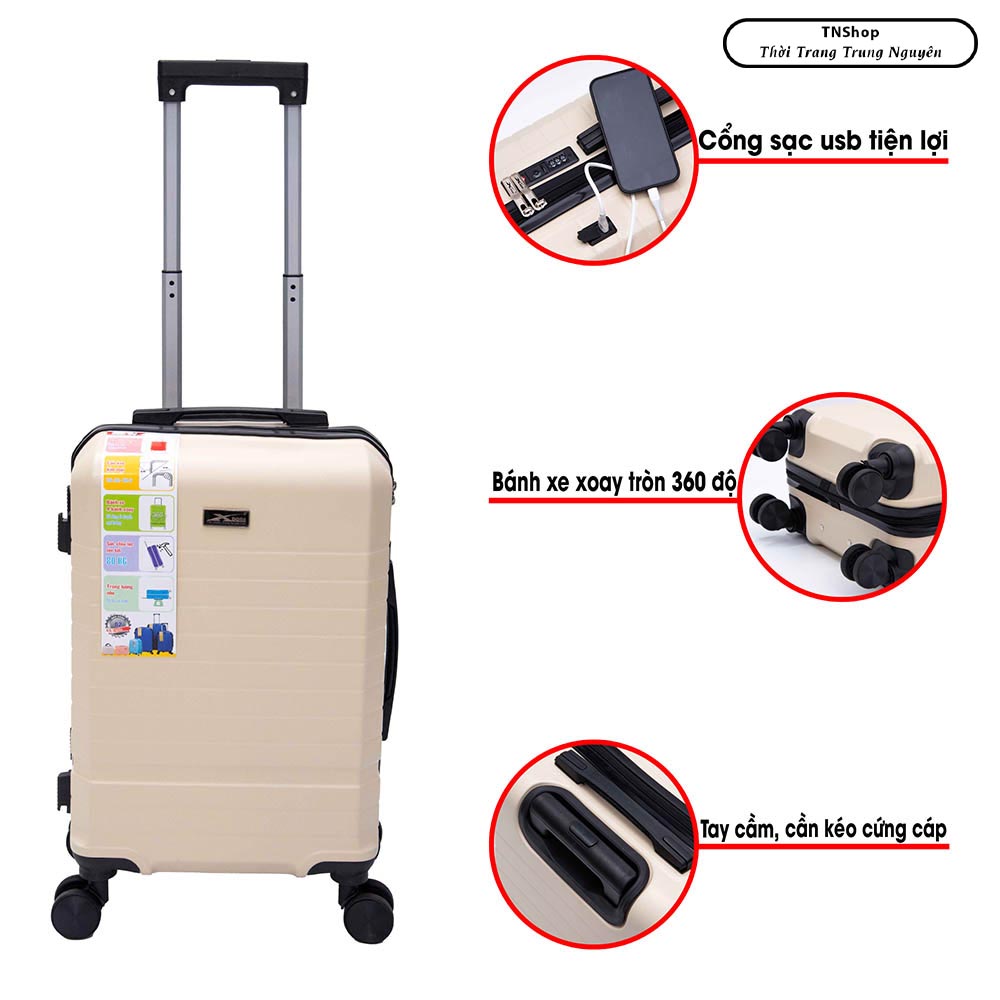 Vali Du Lịch Xbags White Titan Pro XB6105 - Vali 20 Inch Nhựa ABS Cao Cấp, Khóa TSA, Cổng Sạc USB, Chống Va Đập, Thiết Kế Sang Trọng, Bền Bỉ