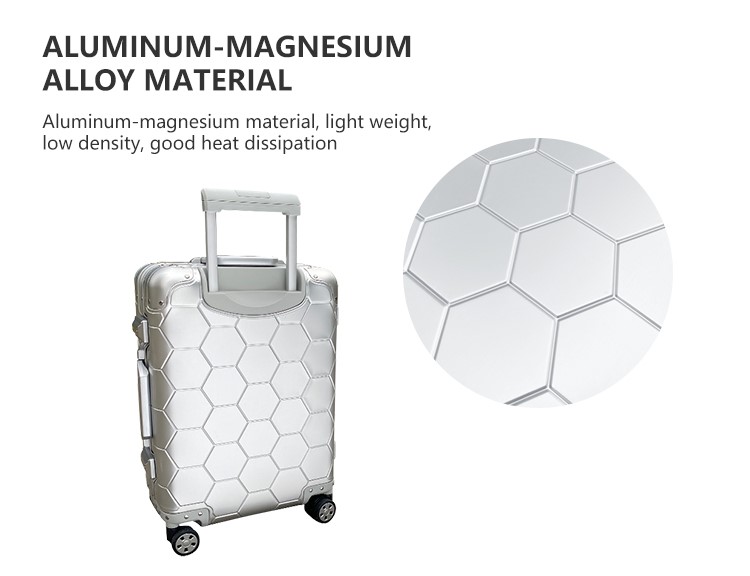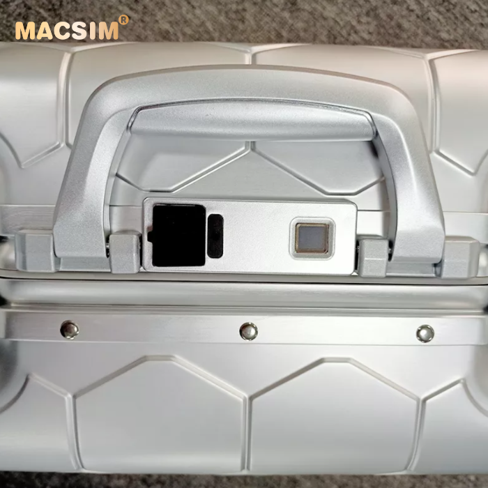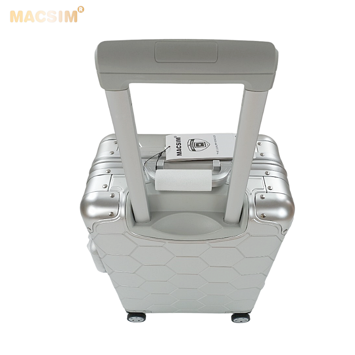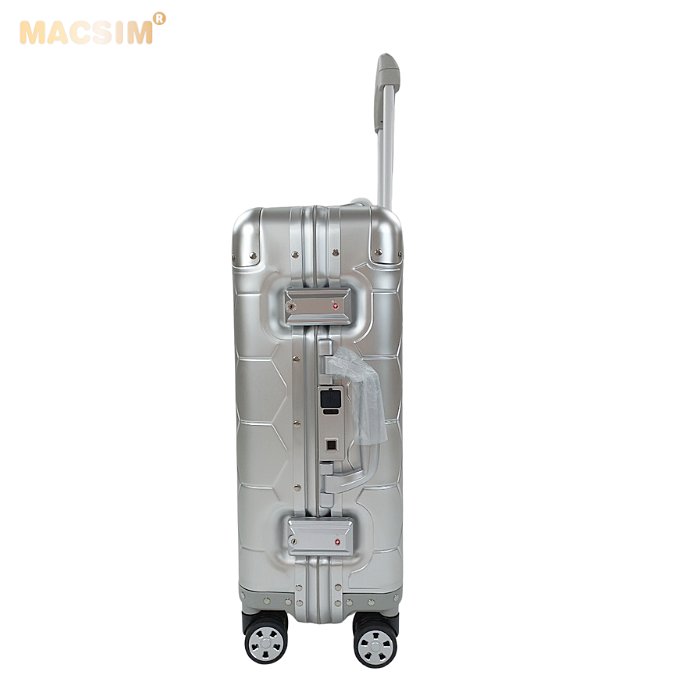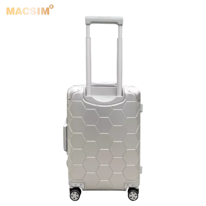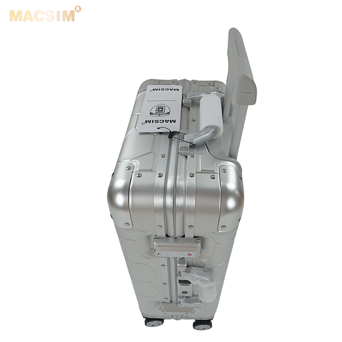 Toàn bộ thân vỏ vali Macsim làm bằng hợp kim nhôm A6063 làm cho vali rất nhẹ, độ đàn hồi cao, chống ăn mòn, chịu được tải trọng lớn.