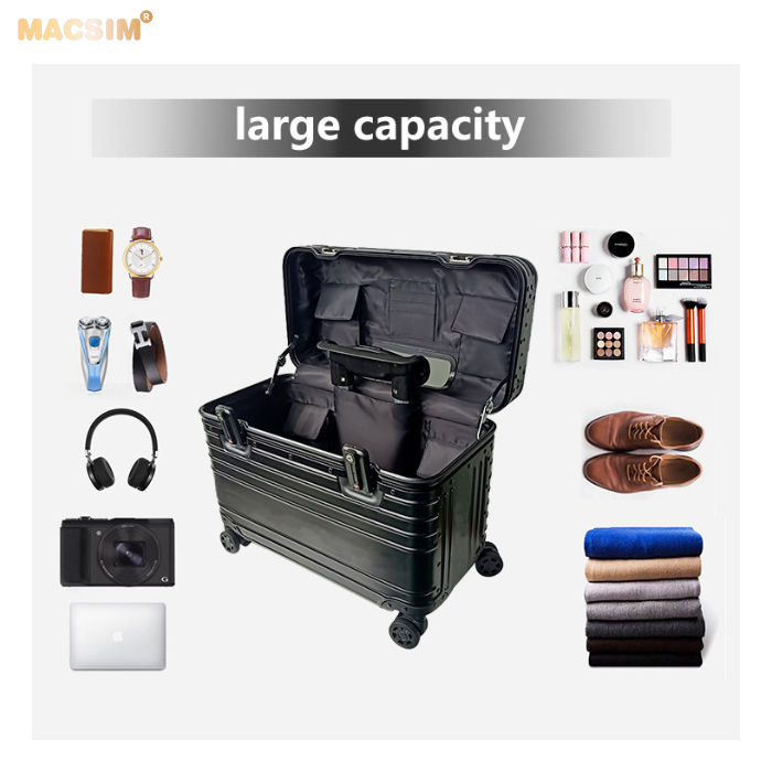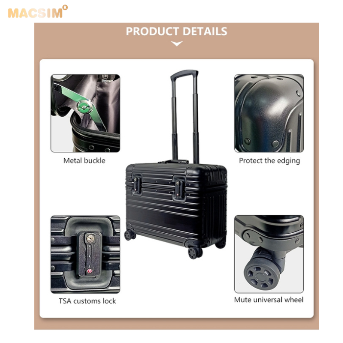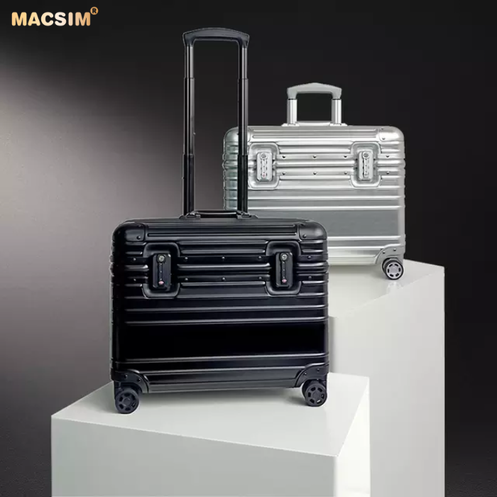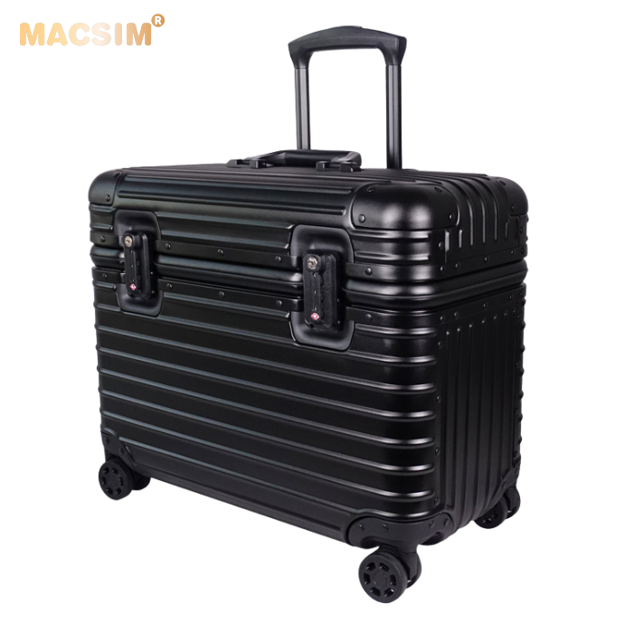 Toàn bộ thân vỏ vali Macsim làm bằng hợp kim nhôm A6063 làm cho vali rất nhẹ, độ đàn hồi cao, chống ăn mòn, chịu được tải trọng lớn.