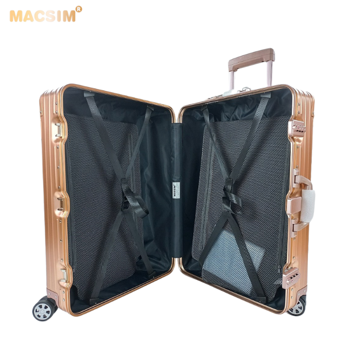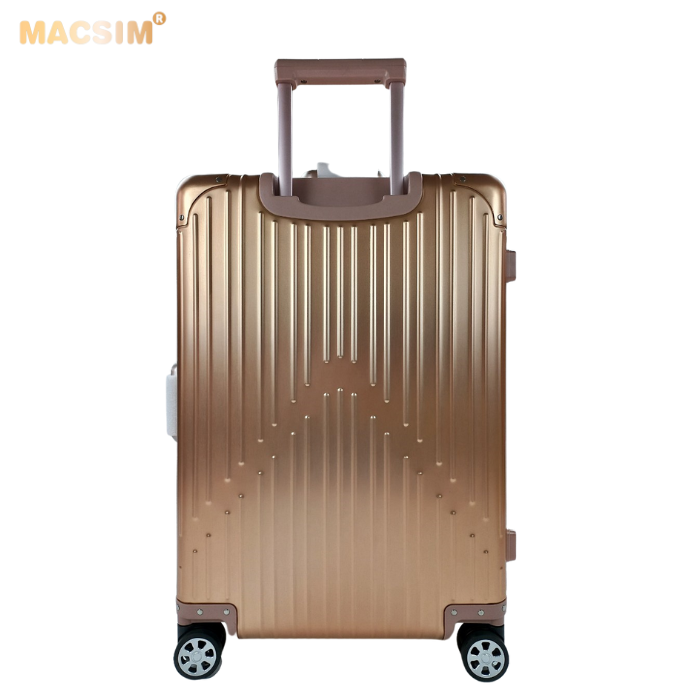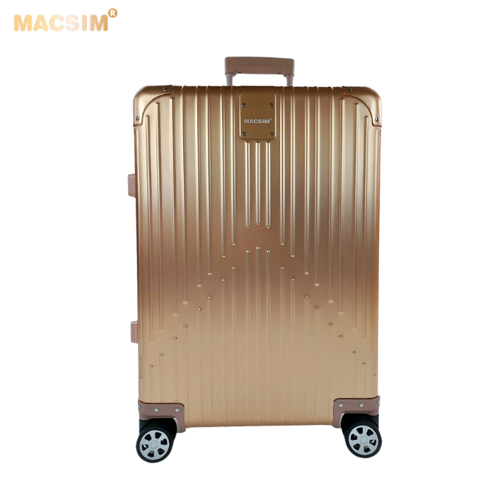 Toàn bộ thân vỏ vali Macsim làm bằng hợp kim nhôm A6063 làm cho vali rất nhẹ, độ đàn hồi cao, chống ăn mòn, chịu được tải trọng lớn.