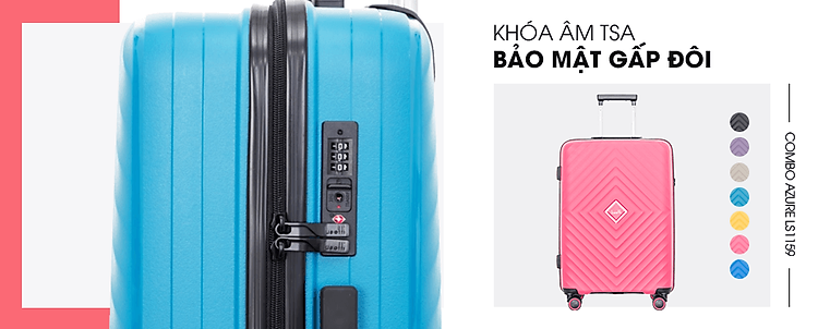 Vali Azure LS1159 được trang bị khoá số TSA với tính năng bảo mật tuyệt đối. Đặc điểm của dòng khoá số TSA này là chỉ có hải quan mới có chìa khoá mở để kiểm tra hành lý của bạn mà không phải đập hay phá khoá như những dòng vali khác.