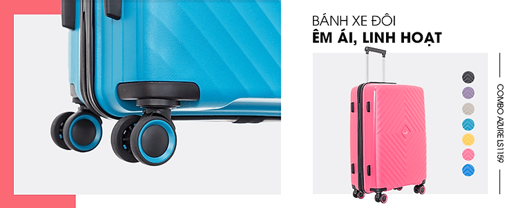 Hệ thống bánh xe đôi di chuyển êm ái và linh hoạt với trục xoay 360 độ, bạn có thể dễ dàng kéo đẩy Combo Vali Azure LS1159 trên các loại địa hình.