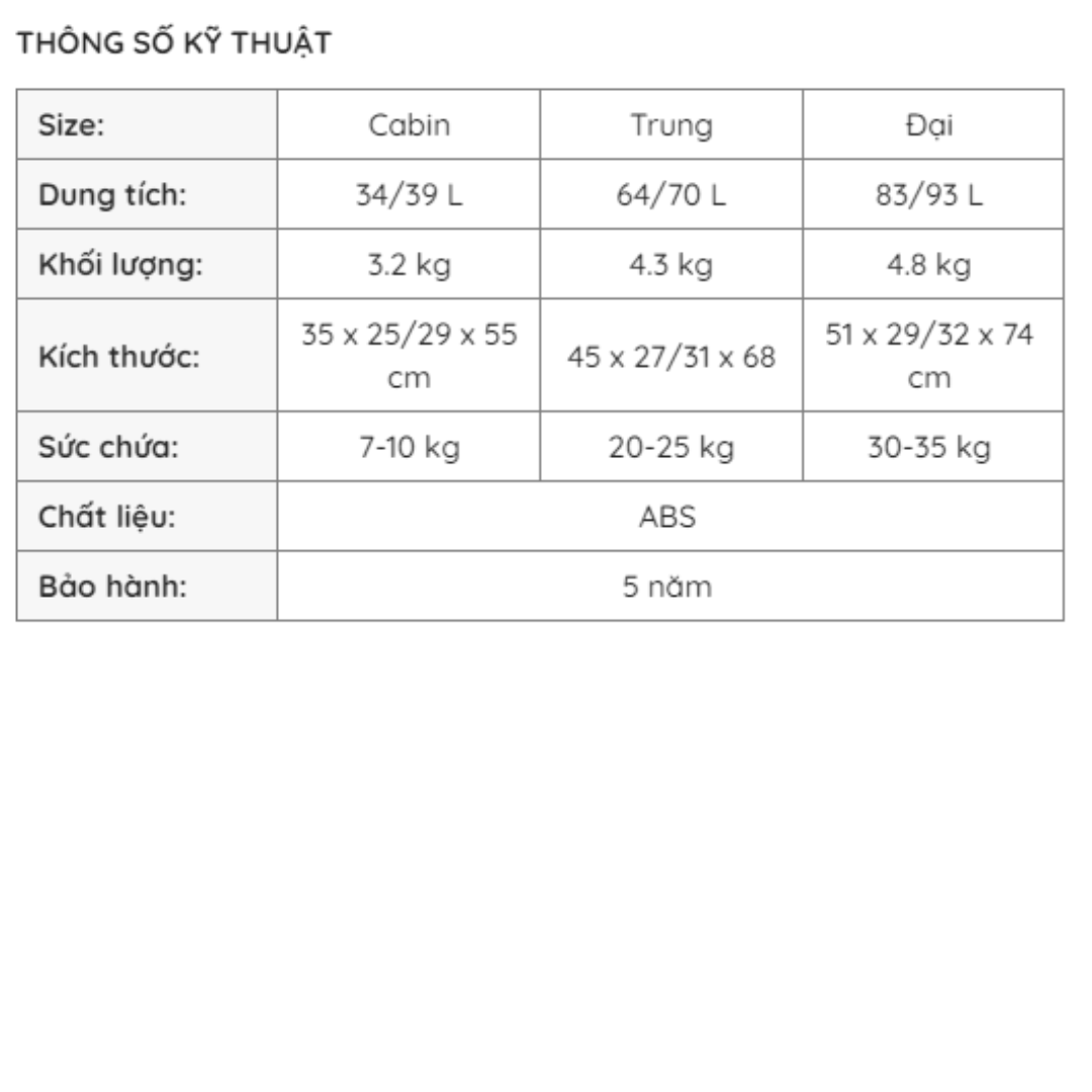 Vali kéo nhựa ABS nhẹ bền, chống mài mòn và va đập
