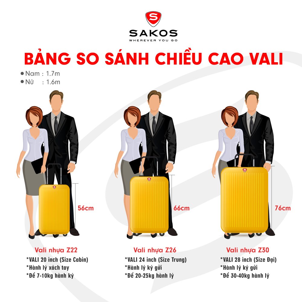 Kích thước | Size: 24inchSức chứa tối đa: 30 kgKích thước :Cao 66 cm - Dài 44 cm - Rộng 24 cmKhối lượng: Nặng 3.43 kg |