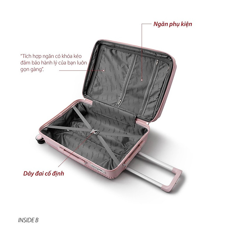 Ngăn chứa được thiết kế rộng rãi, ngăn được chia khoa học với 1 lớp màng vải giúp bạn có thể phân chia đồ bẩn, các vật dụng cá nhân,... Ngoài ra, ngăn còn lại được may tỉ mỉ thêm dây đai cố định giúp cố định quần áo, hàng lí được gọn gàng, ngăn nắp.