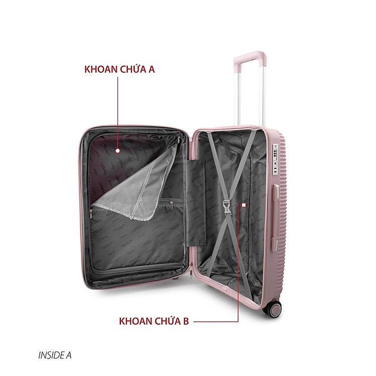 Vali gồm có 8 bánh xe bạc thép chia thành 4 đôi xoay 360 độ linh hoạt, chịu được lực nặng, giảm ồn tốt và đặc biệt bánh xe di chuyển nhẹ nhàng ở mọi địa hình.
