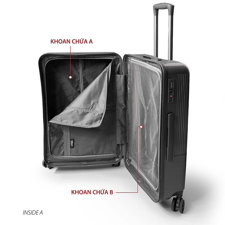 Vali gồm có 8 bánh xe bạc thép chia thành 4 đôi xoay 360 độ linh hoạt, chịu được lực nặng, giảm ồn tốt và đặc biệt bánh xe di chuyển nhẹ nhàng ở mọi địa hình.