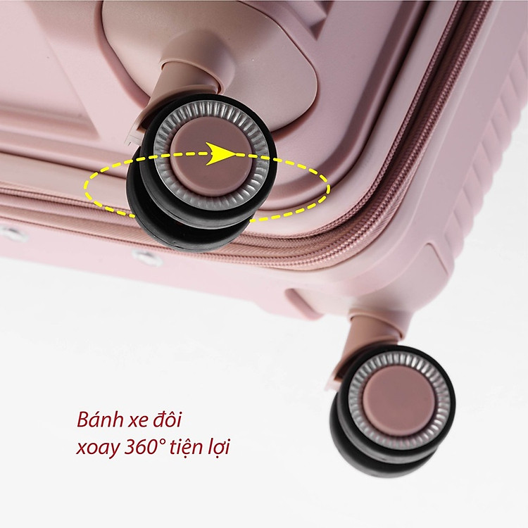 Vali gồm có 8 bánh xe bạc thép chia thành 4 đôi xoay 360 độ linh hoạt, chịu được lực nặng, giảm ồn tốt và đặc biệt bánh xe di chuyển nhẹ nhàng ở mọi địa hình.