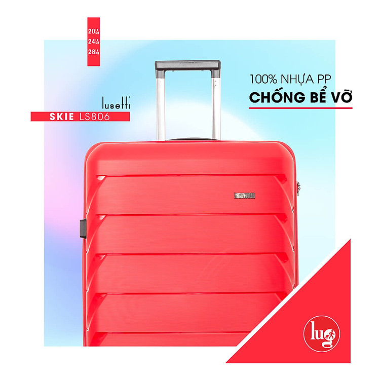 Siêu phẩm mới nhất từ thương hiệu Lusetti được tạo thành từ 100% nhựa PP nguyên sinh, không pha bất kỳ tạp chất nhựa khác. Đây là chất liệu nhựa được các hãng sản xuất hành lý ưa chuộng vì khả năng đàn hồi cực kỳ cao giảm thiểu tối đa tác động từ 4 phía của vali.