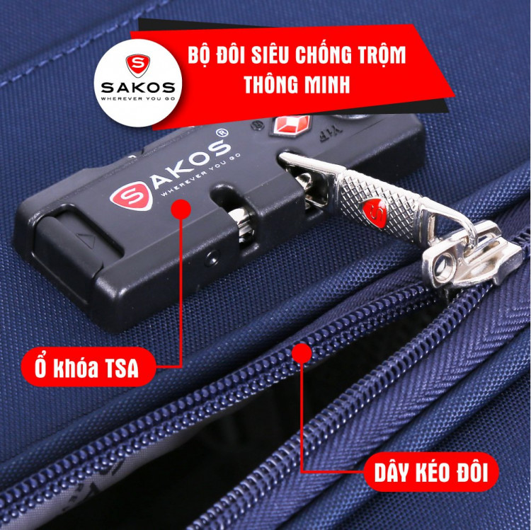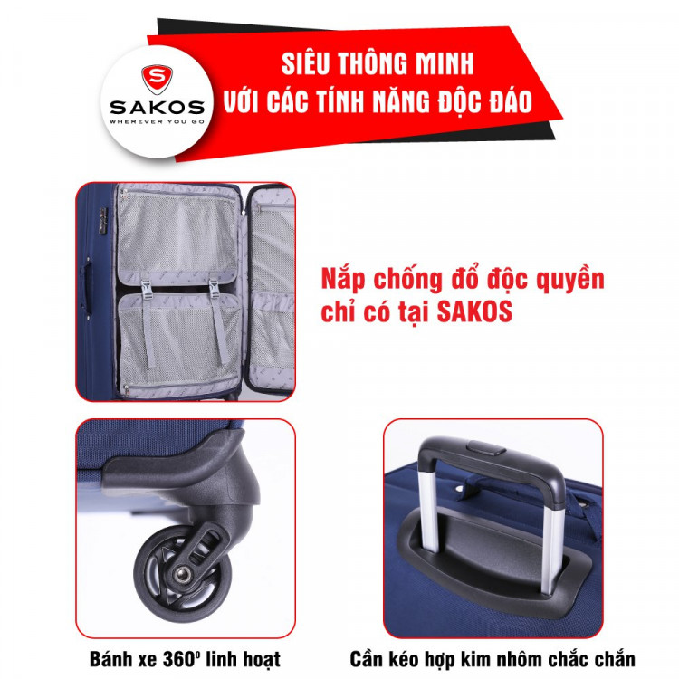 là sản phẩm có thiết kế đột phá về công nghệ của Sakos với mong muốn đem đến những trải nghiệm tốt nhất, giúp cho chuyến đi thêm hoàn hảo với 4 siêu vượt trội: siêu nhẹ, siêu trượt nước, siêu chống trộm, siêu thông minh- chỉ có ở