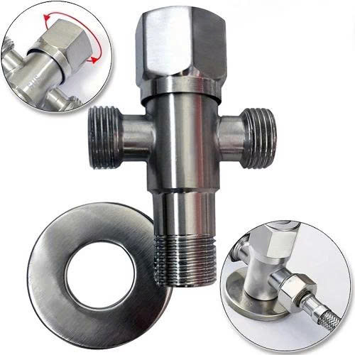 Mẫu 1. Van T (inox) có khoá, giảm áp, chia thành 3 ngã: 1 NGÃ NƯỚC VÀO (ren ngoài) + 2 NGÃ NƯỚC RA (2 ren ngoài)