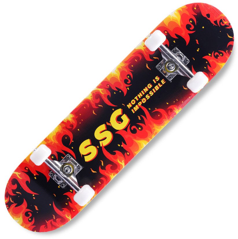 - Mặt ván được kết cấu nhám nhằm tăng khả năng ma sát với mặt bàn chân hoặc đế giầy khi trượt.Sản phẩm ván trượt cao cấp này đáp ứng mọi tiêu chí thi đầu như: rẻ phải,rẻ trái,,úp cua skill dễ dàng.