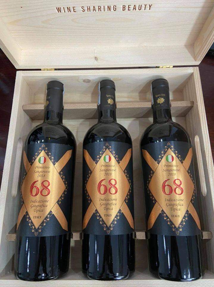 Mẫu mã thiết kế: Rượu vang Ý 68 kết hợp giữa 2 giống nho Primitivo và Sangiovese, được trồng và thu hoạch kỹ lưỡng từ vùng sản xuất nho nổi tiếng nước Ý (Puglia). Mẫu mã thiết kế với màu vàng bắt mắt và chữ X lớn tạo sự tò mò cho người sử dụng.