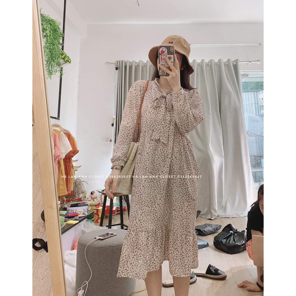 Giới thiệu Váy bầu dài tay thời trang M428 chất lụa hoa freesize từ 45 đến 70kg