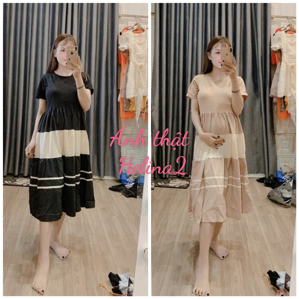 Giới thiệu Váy bầu DÁNG SUÔNG ĐUÔI CÁ chất cotton thoải mái, thoáng mát V222