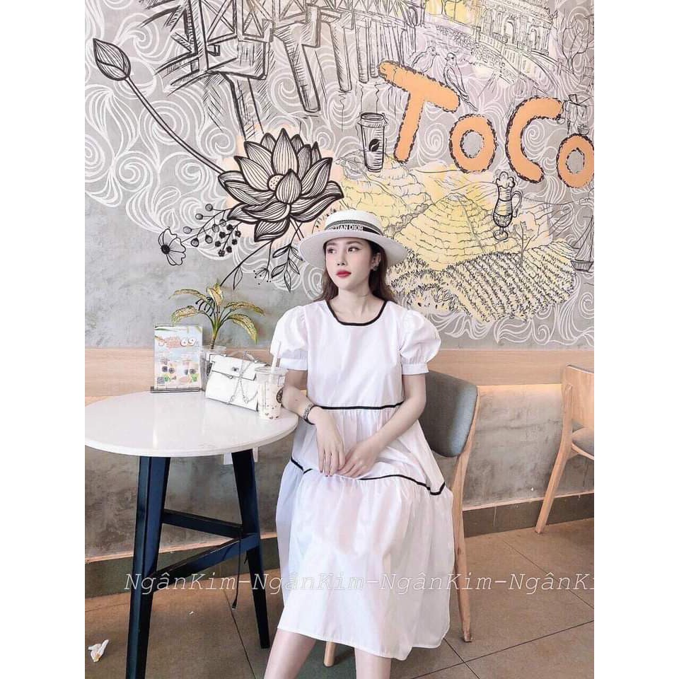 Váy bầu đẹp thời trang thiết kế mùa hè dambauxinh-KK1 Dáng suông đuôi cá kiểu sát nách màu trắng kem