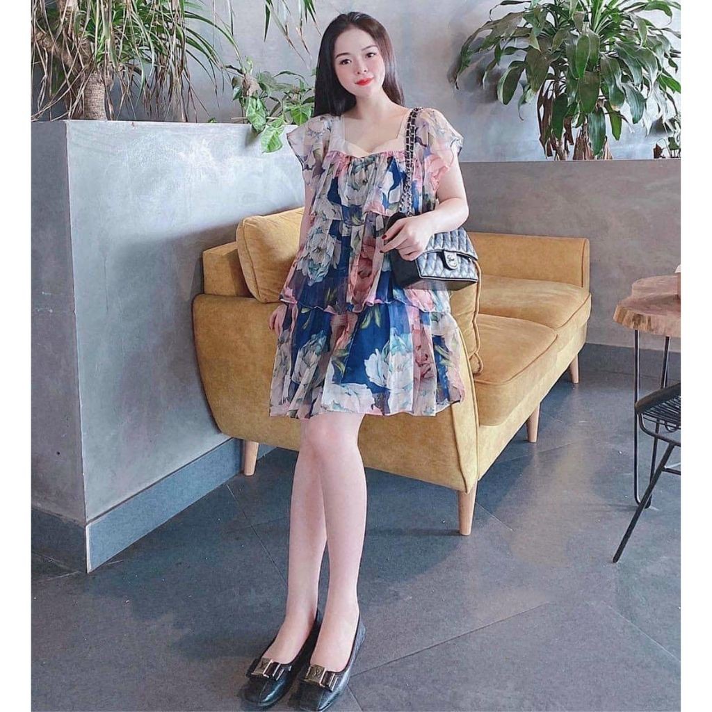 Giới thiệu Váy bầu hai dây thời trang thiết kế M342 chất voan hai lớp freesize từ 45 đến 70kg