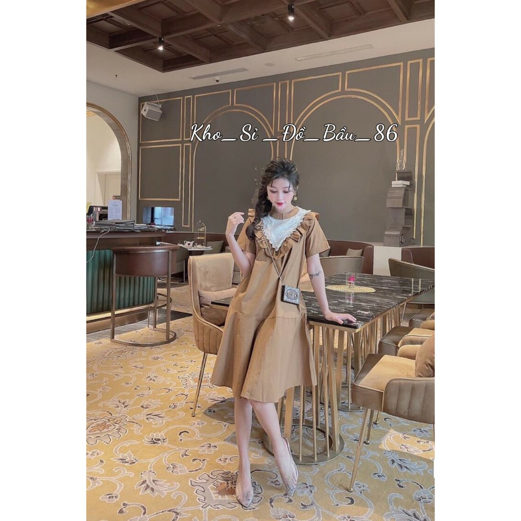 Giới thiệu Váy bầu thiết kế CỔ REN BÈO chất lụa mềm mặc bầu và sau sinh V278