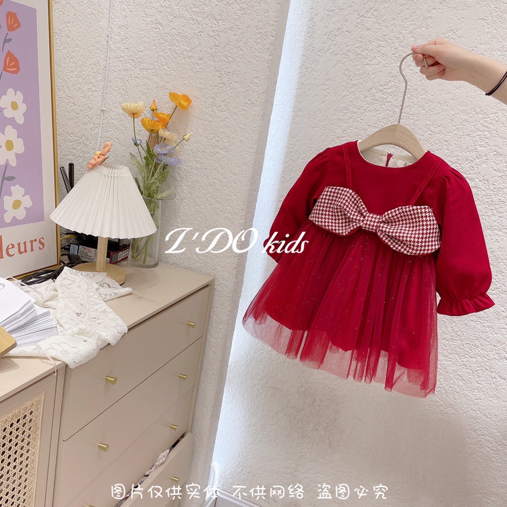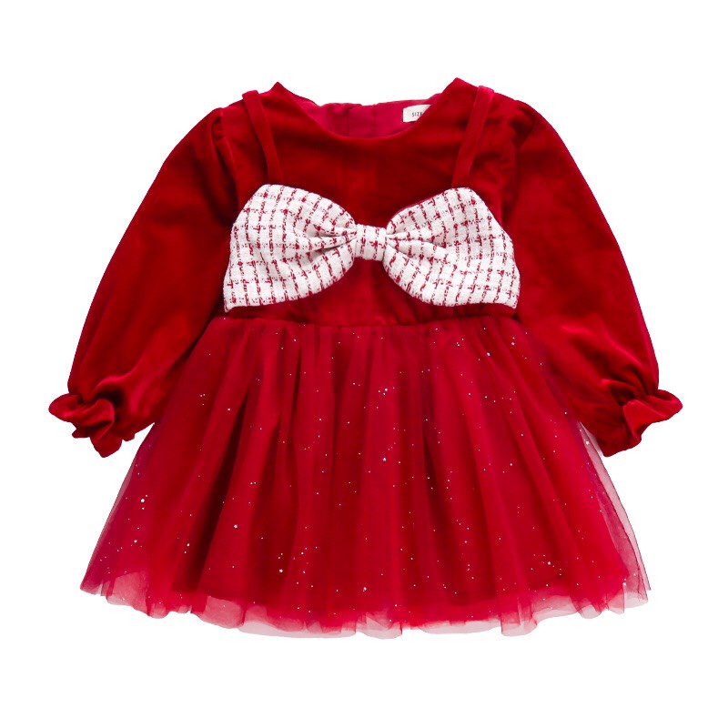 Giới thiệu Váy bé gái nhung gắn nơ ngực kẻ caro XHN773