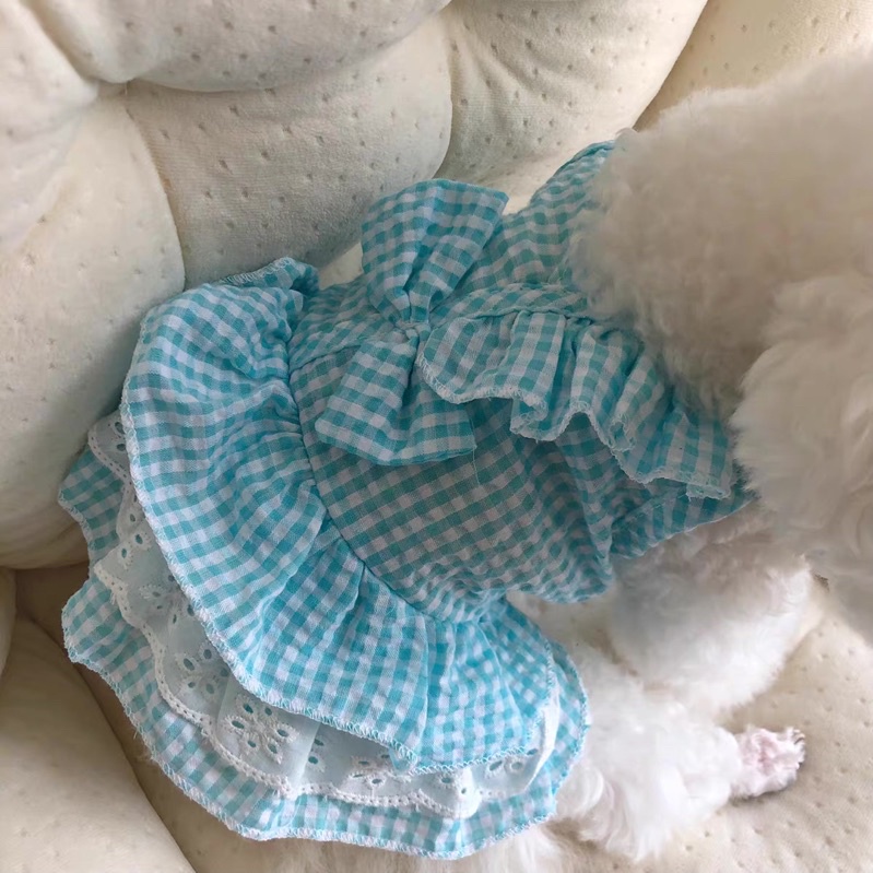 Giới thiệu Váy cho thú cưng - váy hai dây chéo phối sọc caro phần eo thắt nơ xinh xắn cho chó mèo đi biển