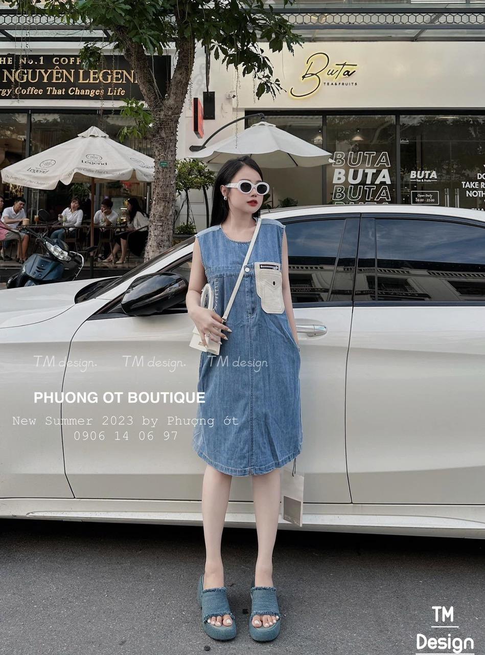 VÁY ĐI CHƠI, VÁY BABYDOLL, VÁY SUÔNG JEAN CỔ TRÒN SÁT NÁCH TÚI KIỂU CỰC HOT