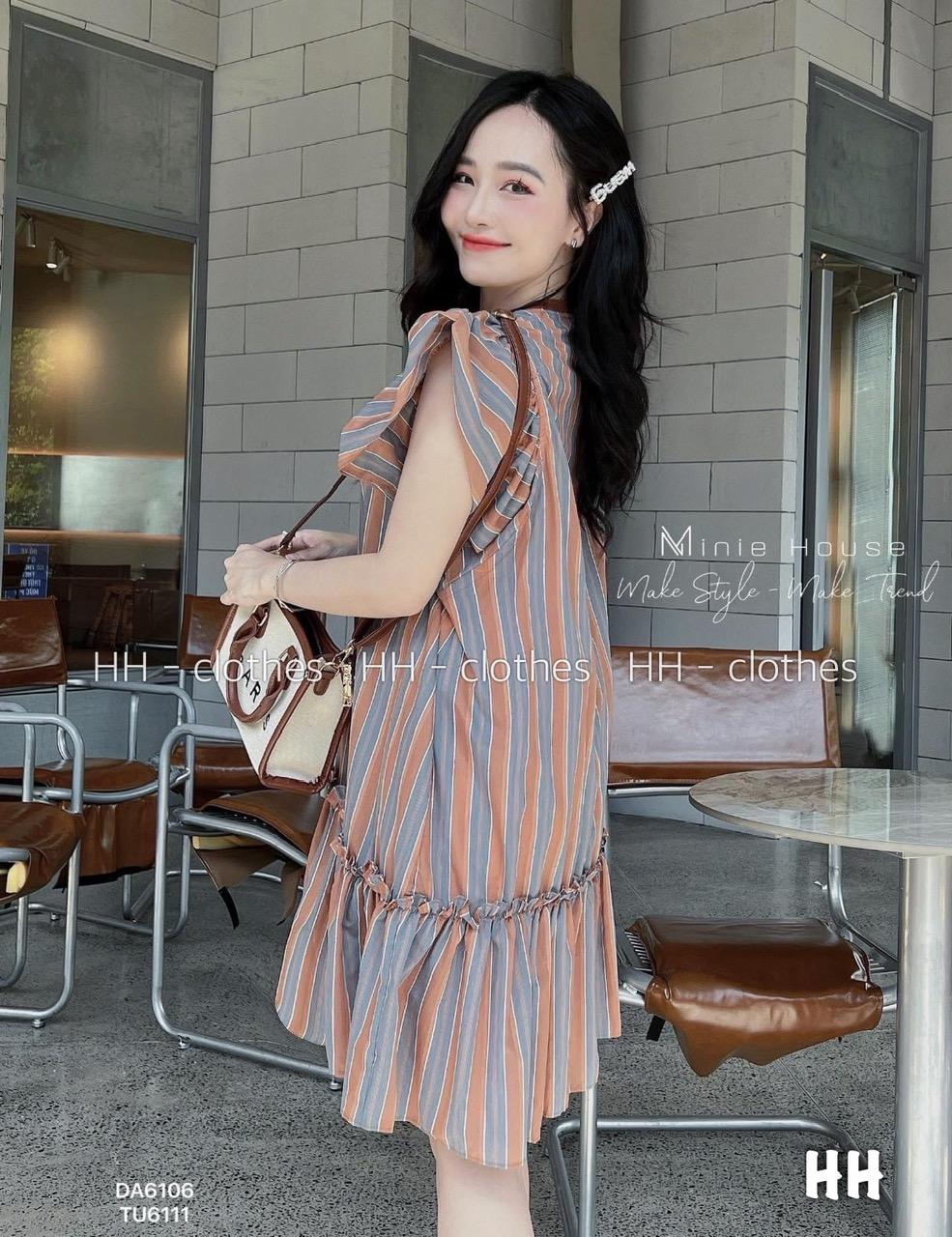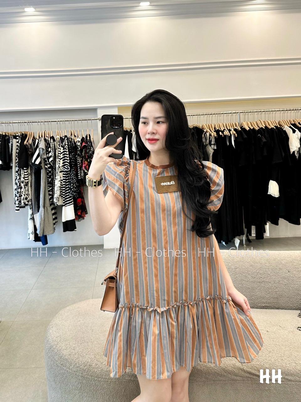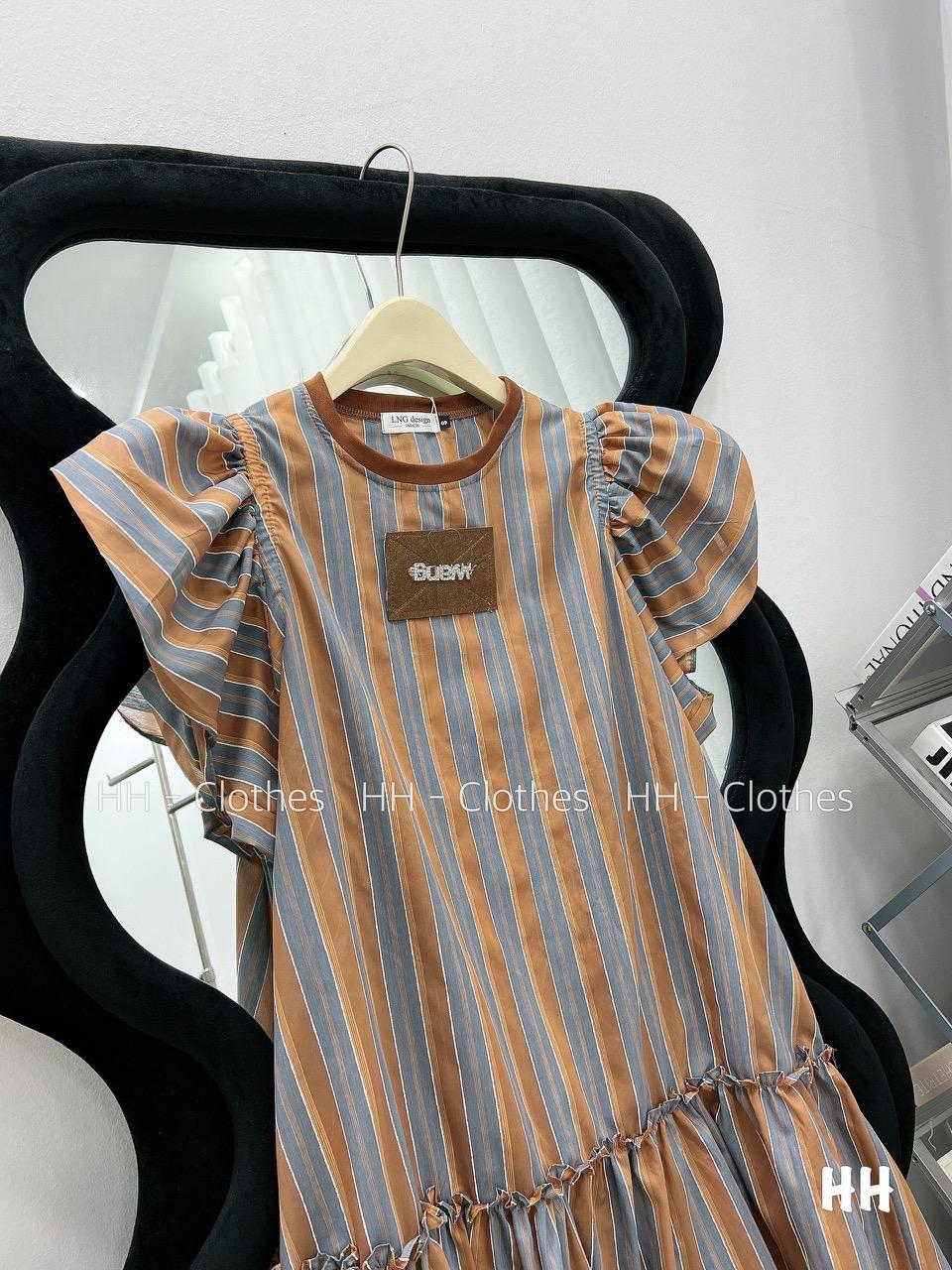 VÁY ĐI CHƠI, VÁY SUÔNG KẺ TAY BÈO DÁNG XÒE CỰC KUTE