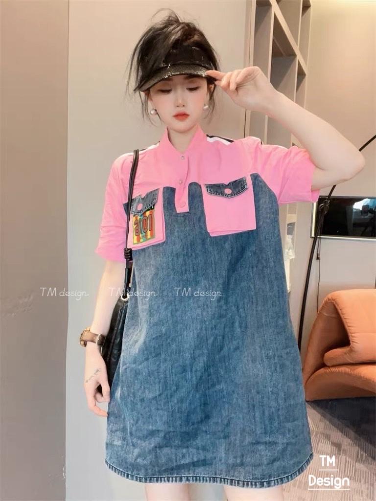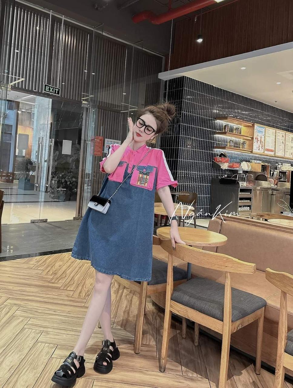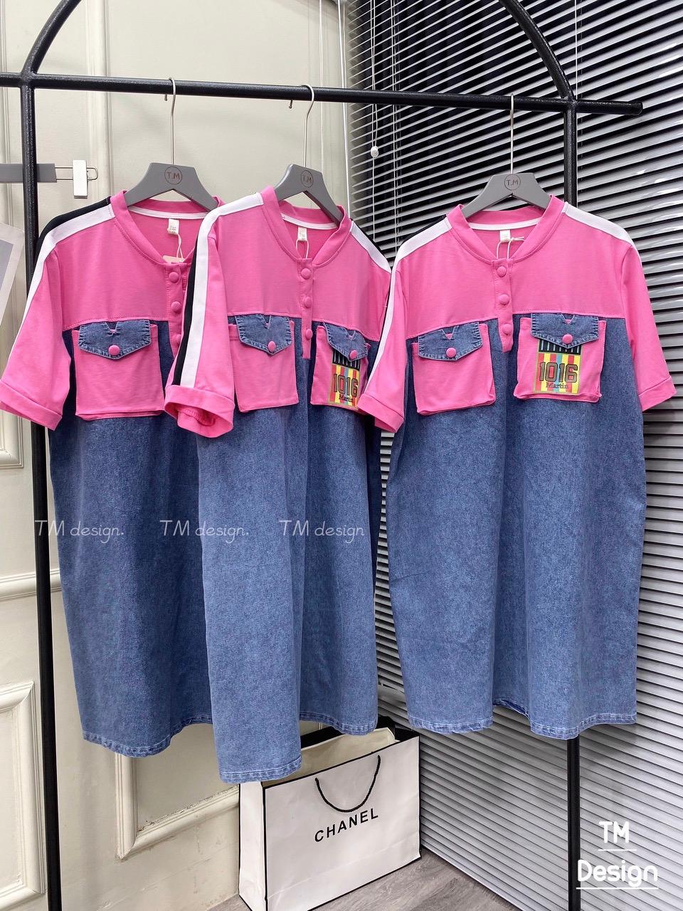 VÁY ĐI CHƠI, VÁY SUÔNG SƠ MI PHA BÒ HỒNG TÚI NẤP CỰC HOT