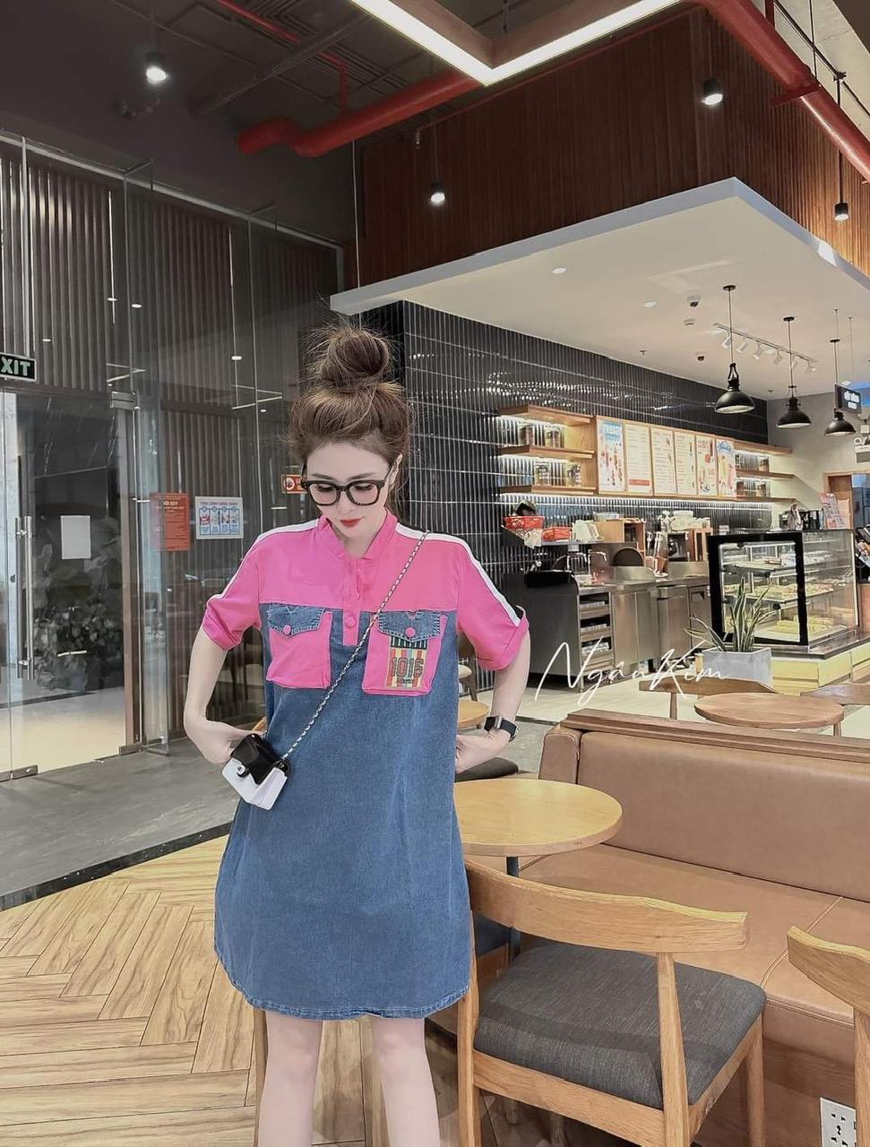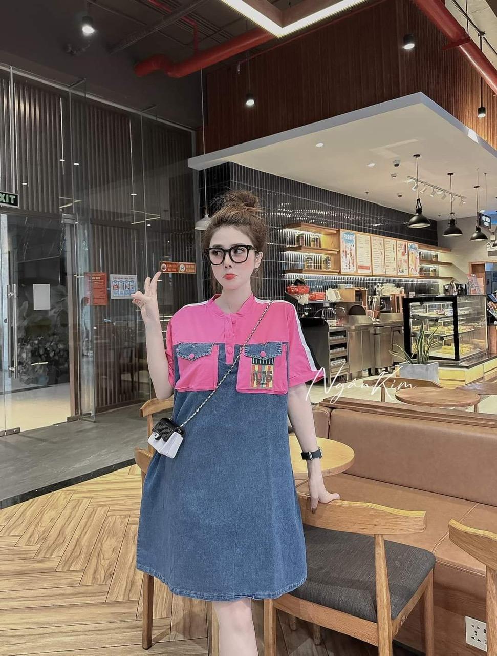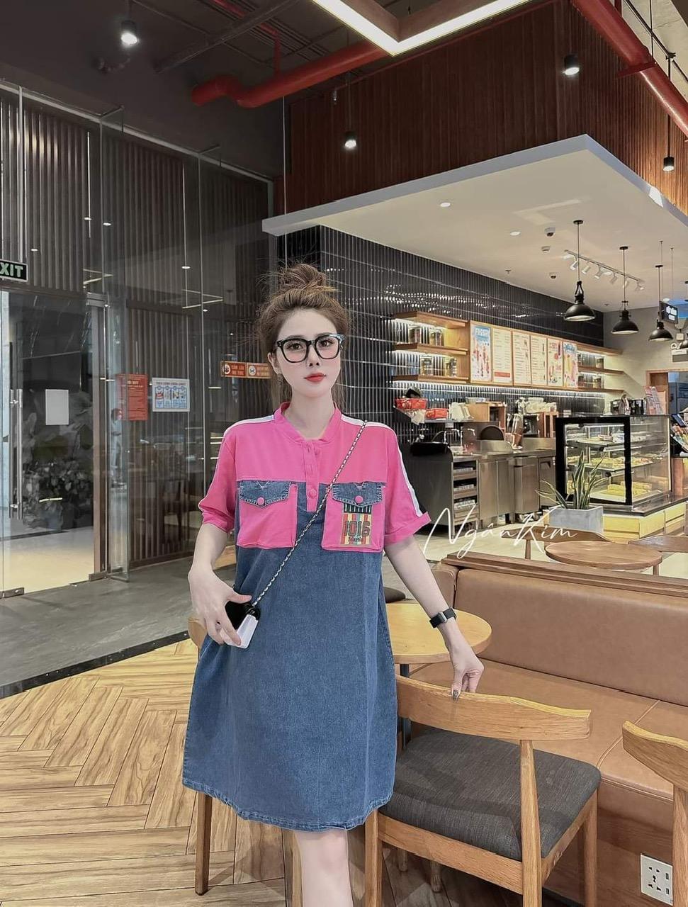 VÁY ĐI CHƠI, VÁY SUÔNG SƠ MI PHA BÒ HỒNG TÚI NẤP CỰC HOT