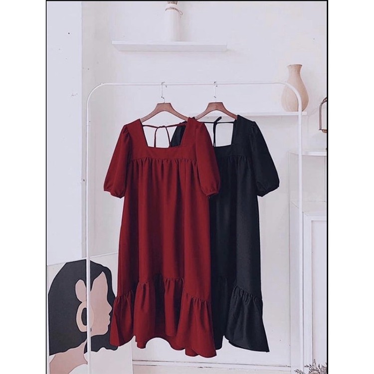 Giới thiệu Váy Đuôi Cá Đầm Suông Cổ Vuông Tay Lỡ Chất Đũi Mềm