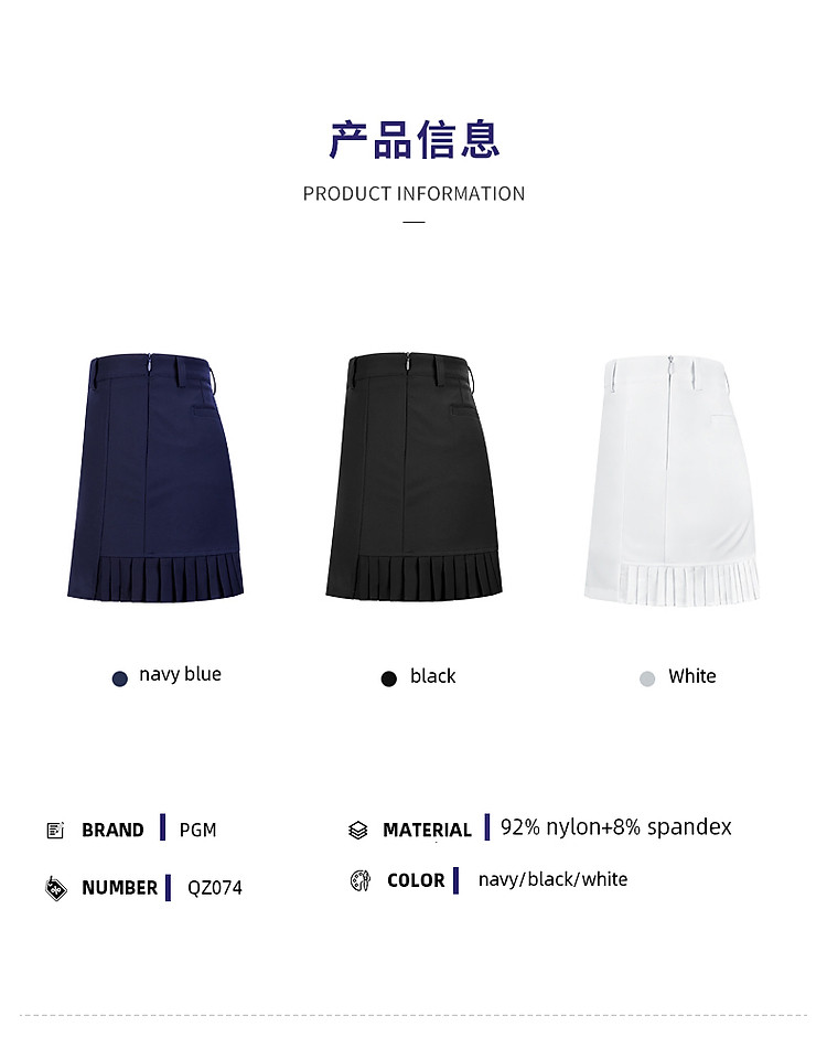 - Váy QZ074 là mẫu váy mới của PGM, với ưu điểm dễ phối đồ và chất vải mềm mại, đàn hồi cao, nhanh khô, hút ẩm tốt, QZ074 đã chiếm được nhiều cảm tình của các golfer nữ.