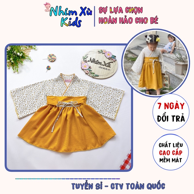 Giới thiệu Váy Kimono Nhật Bản Cách Tân Cho Bé Gái 3 Đến 18kg, Đầm Bé Gái Chất Lụa Ướt Mềm Mại [A040]
