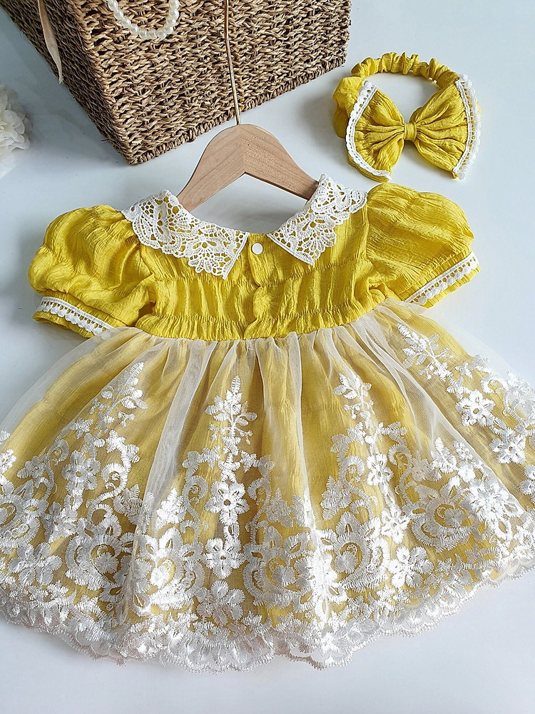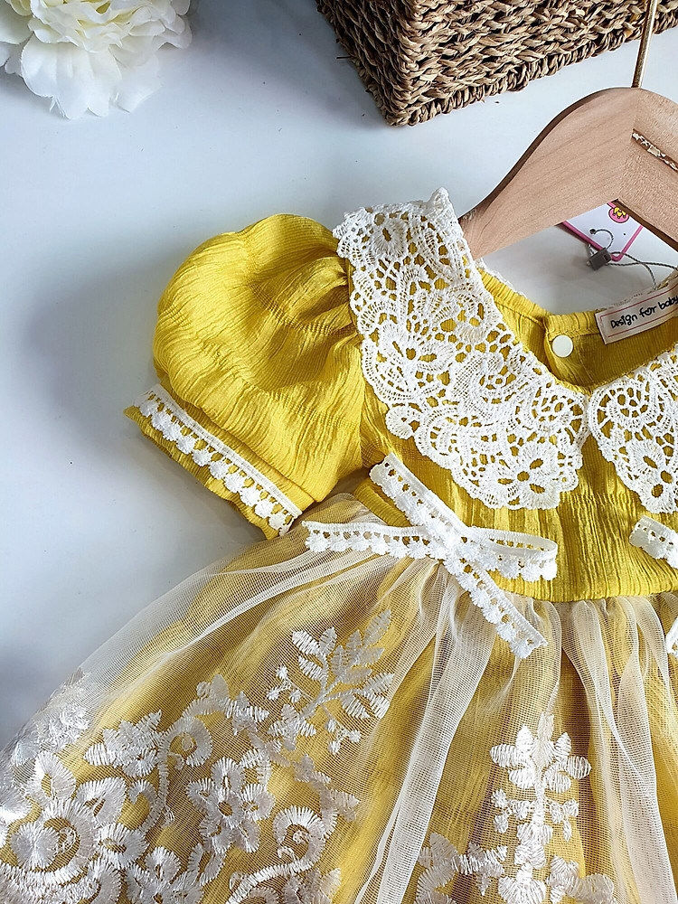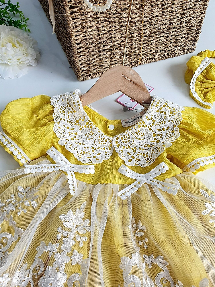 ● Tên sản phẩm: Váy Lolita Ren Vàng Bé Gái 3 Đến 12kg Chất Đũi Xốp Nhún Mềm Mại [V090]