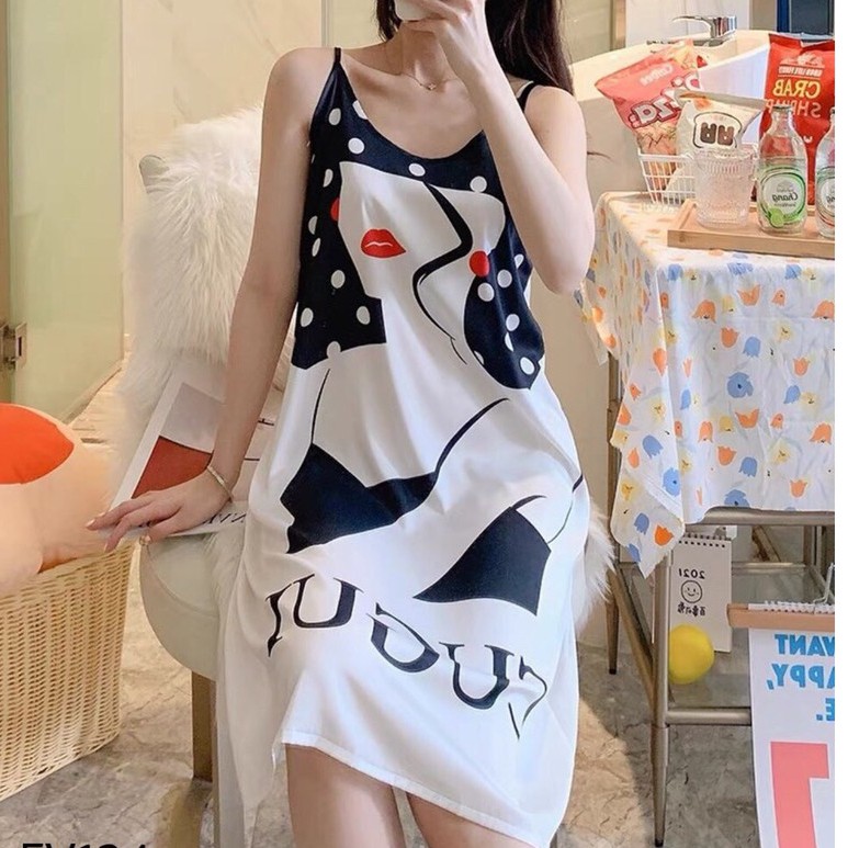 Giới thiệu Váy Ngủ 2 Dây Lụa Satin Cao Cấp in Hình Cute