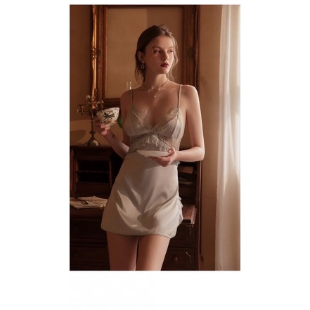 Váy ngủ lụa sexy gợi cảm phối ren bèo tiểu thư quyến rũ - Queen.Sexy
