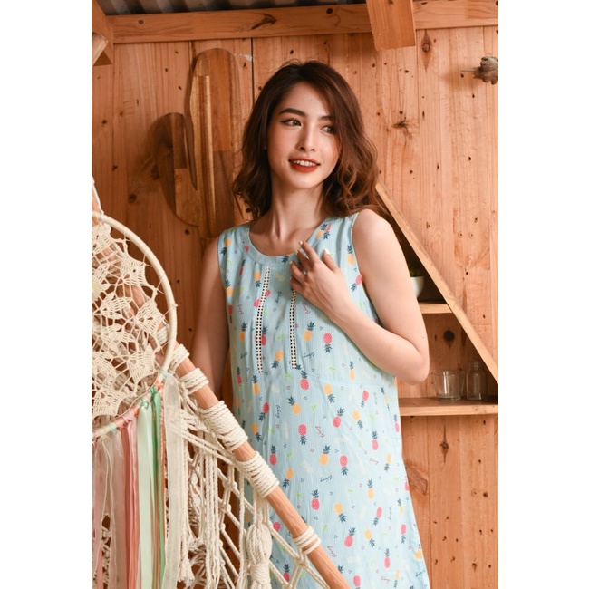 -------------------- MÔ TẢ SẢN PHẨM: Váy suông sát nách, cổ tròn, phần ngực phối ren tạo điểm nhấn. Họa tiết kẻ sọc, in hình trái cây nhiều màu sắc nổi bật. Thiết kế suông dễ mặc và thời trang, che khuyết điểm, tạo cảm giác đôi chân dài hơn.