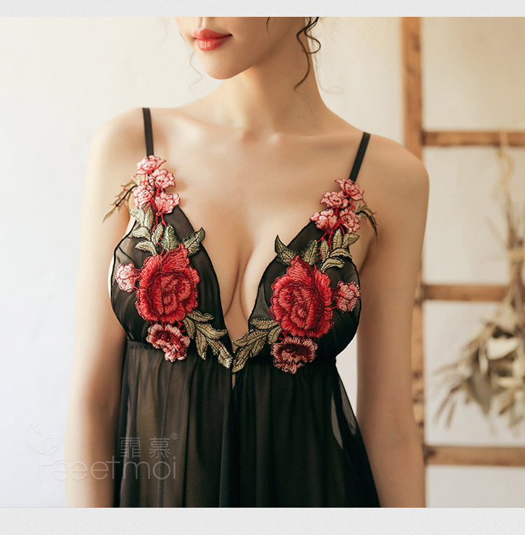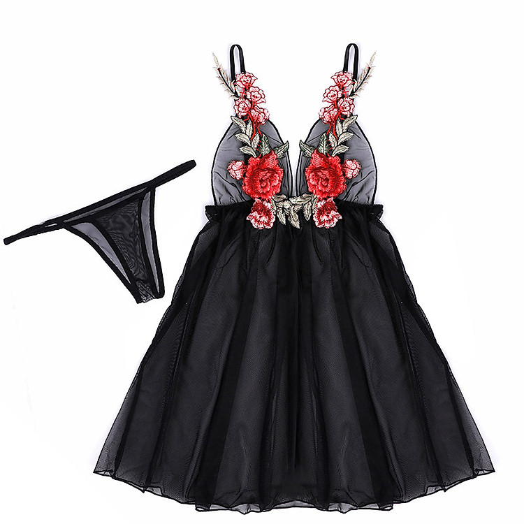 Váy ngủ thêu hoa quyến rũ xẻ giữa sexy đầm ngủ xuyên thấu gợi cảm