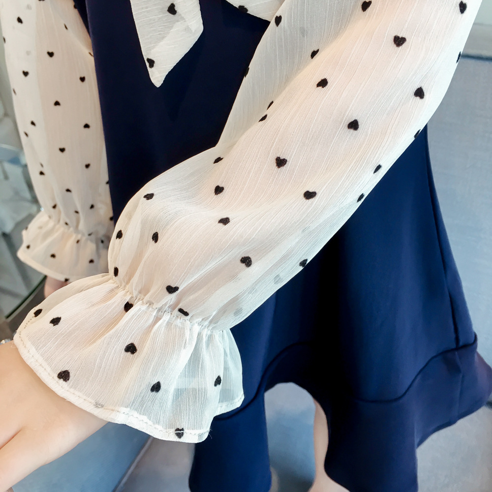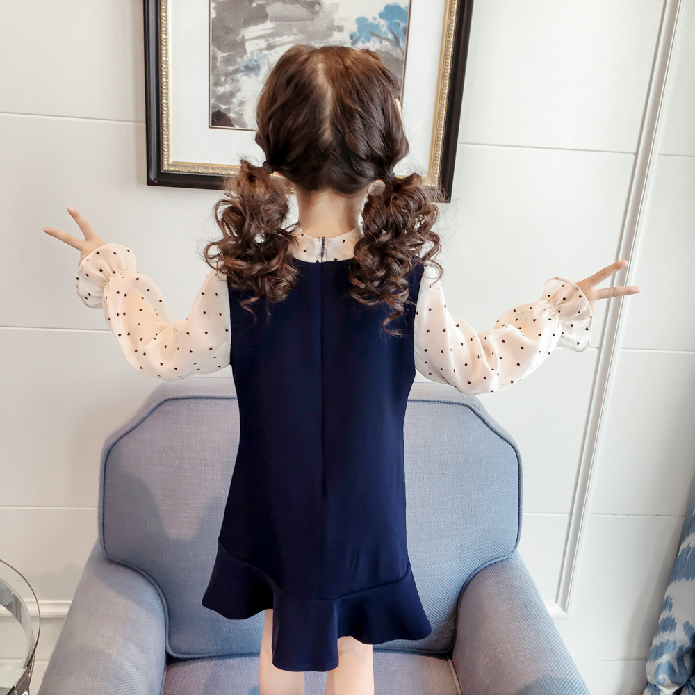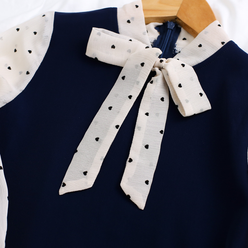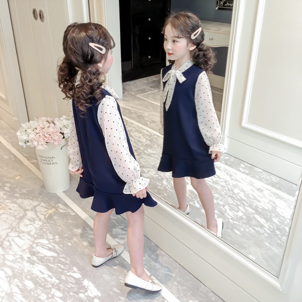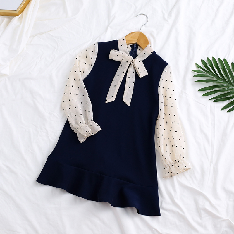 Váy tiểu thư tay von bé gái 3-8 tuổi thiết kế dài tay khóa kéo phía sau và dây thắt nơ ở cổ