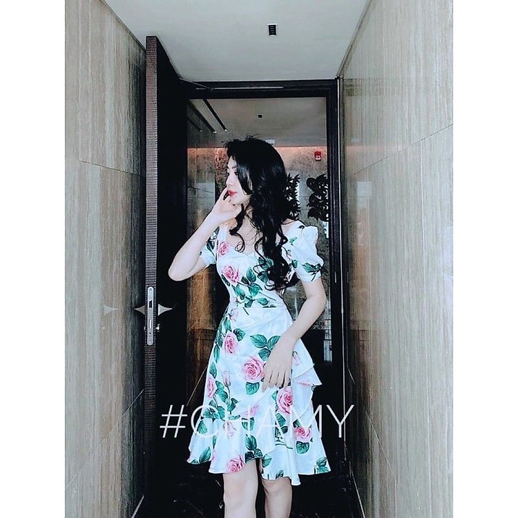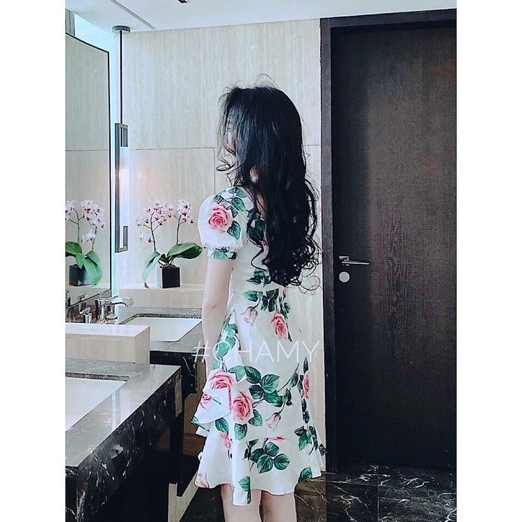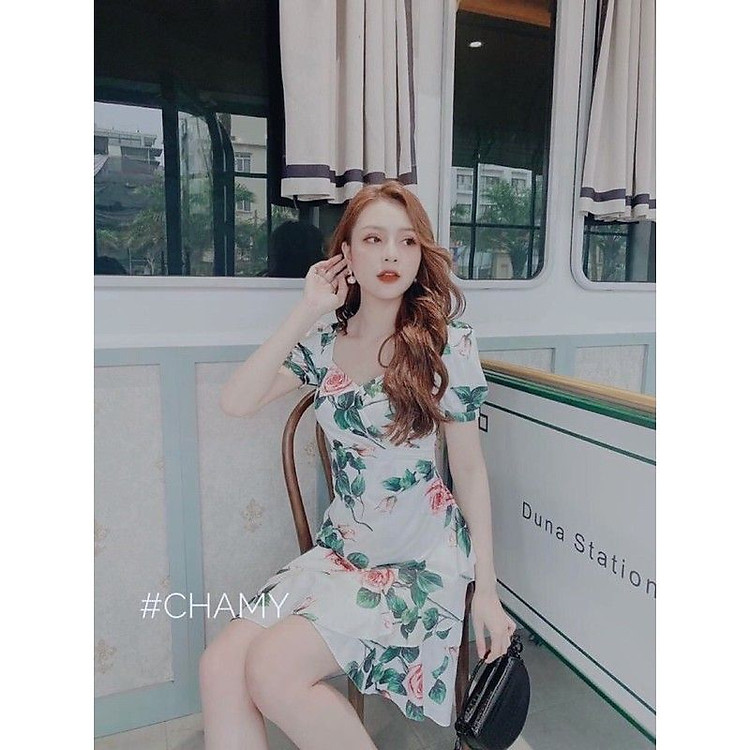 ???? VÁY HOA VẠT BÈO CỔ V TIM????