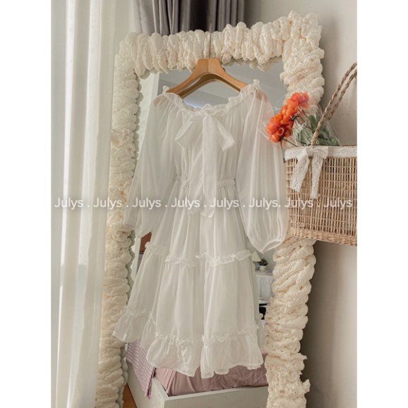 Thời Trang Nữ > Đồ truyền thống > Đầm || váy trễ vai trắng tay bồng dáng dài, đầm trễ vai tiểu thư dự tiệc chất đẹp, ulzzang xinh xắn