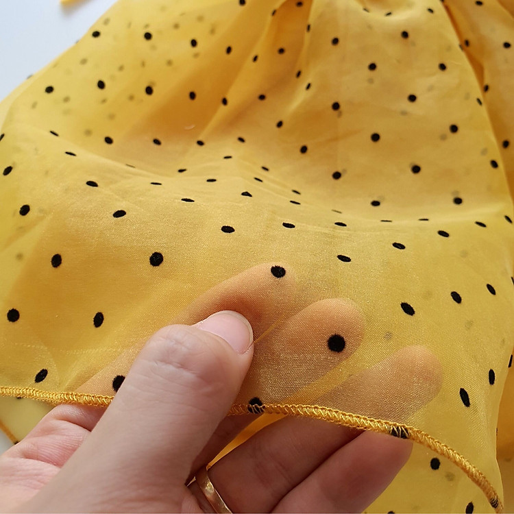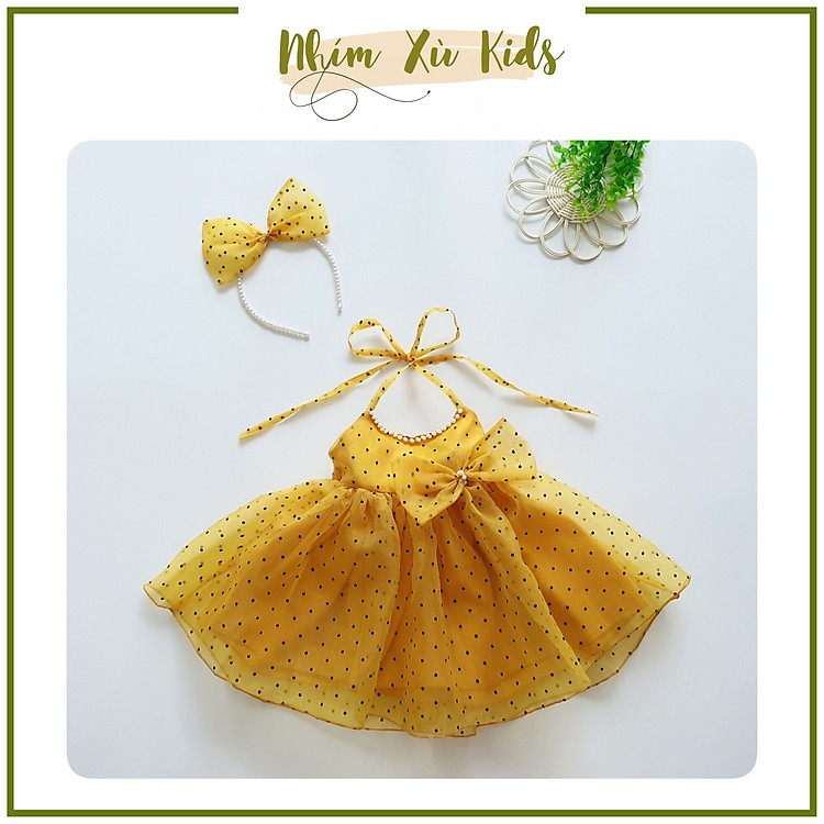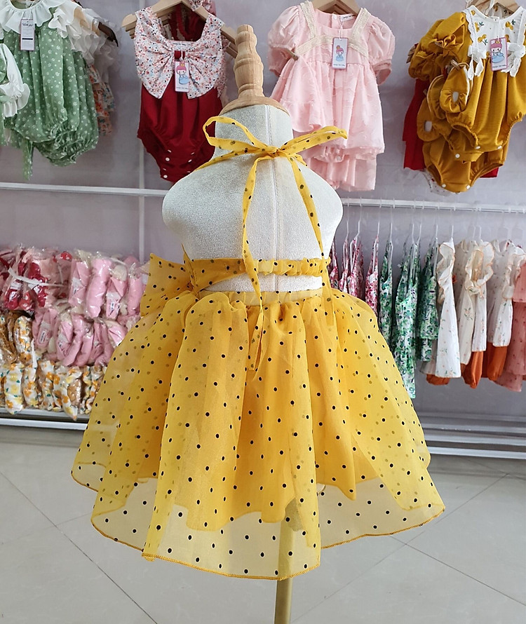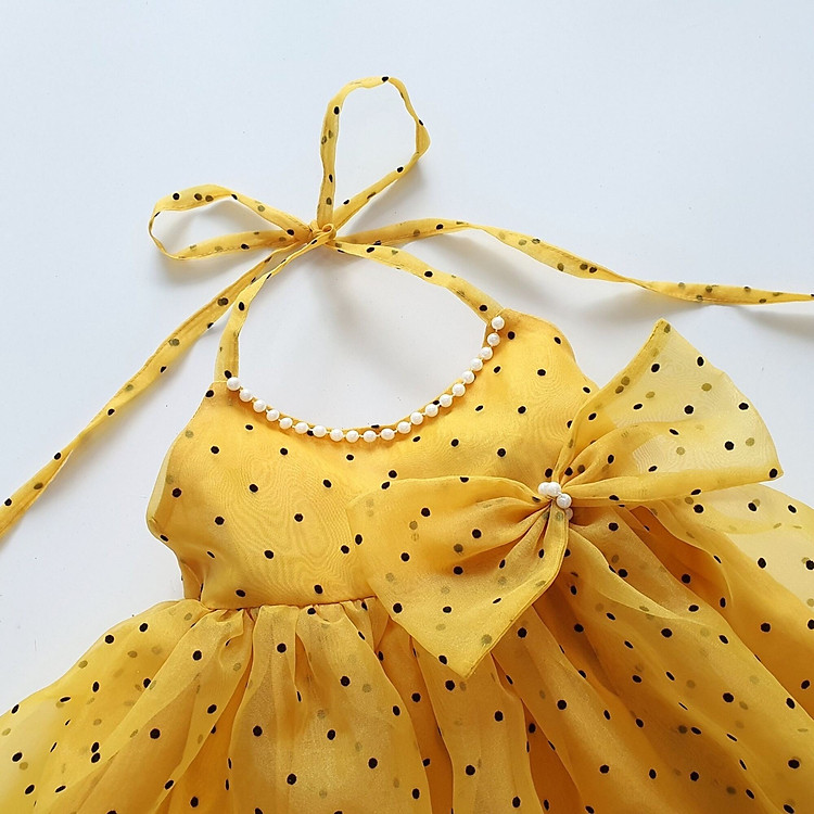 ● Tên sản phẩm: Váy Yếm Chấm Bi Vàng Công Chúa 4 - 18kg Chất Tơ Kính Lót Lụa Habutai [V083]